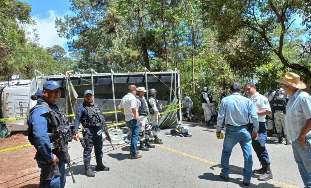 Volcadura de vehículo de la Guardia Nacional deja un muerto y 14 heridos en Oaxaca