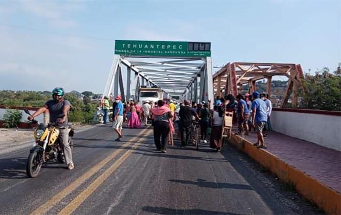 Campesinos de Tagolaba bloquean Puente de Fierro en Tehuantepec