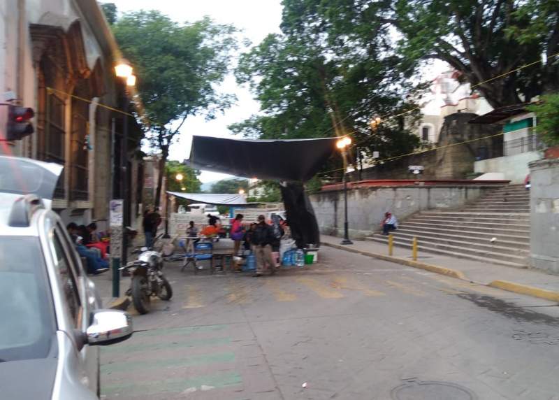 Oaxaca.- Por segundo día consecutivo, un reducido grupo de personas del Frente Indígenas de Pueblos Olvidados de Oaxaca (FIPOO) continúa con su bloqueo en la avenida Independencia y cruces aledaños a la basílica de La Soledad, en la capital.