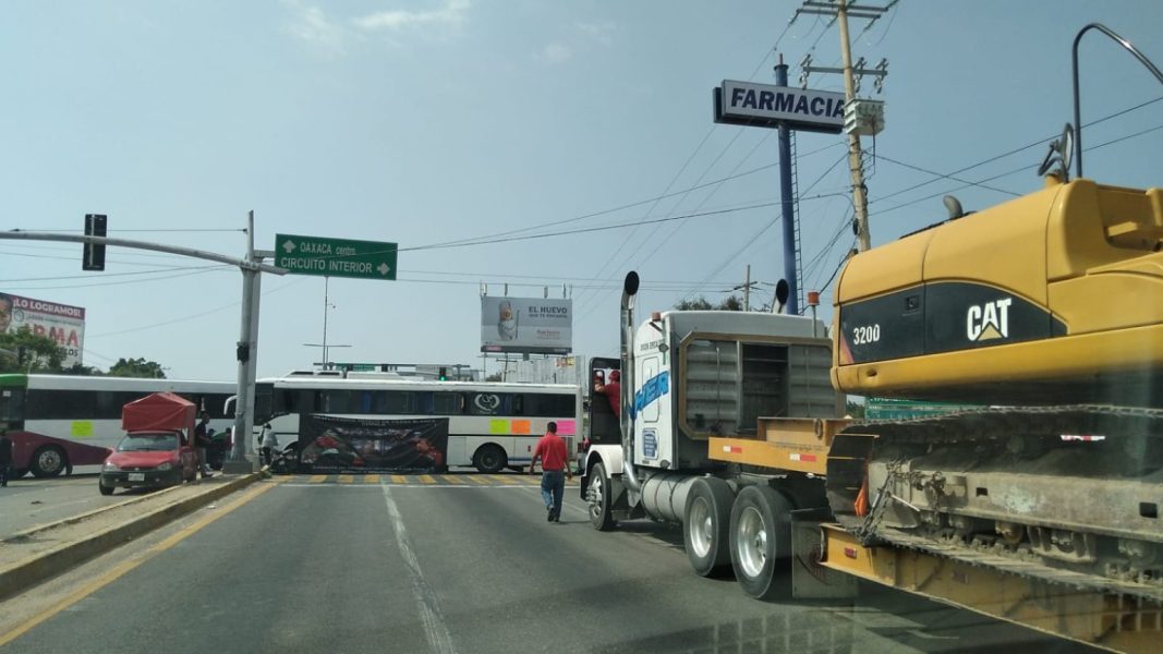 Integrantes del Movimiento de Unificación y Lucha Triqui Independiente (MULTI), bloquean este martes el crucero de Hacienda Blanca.