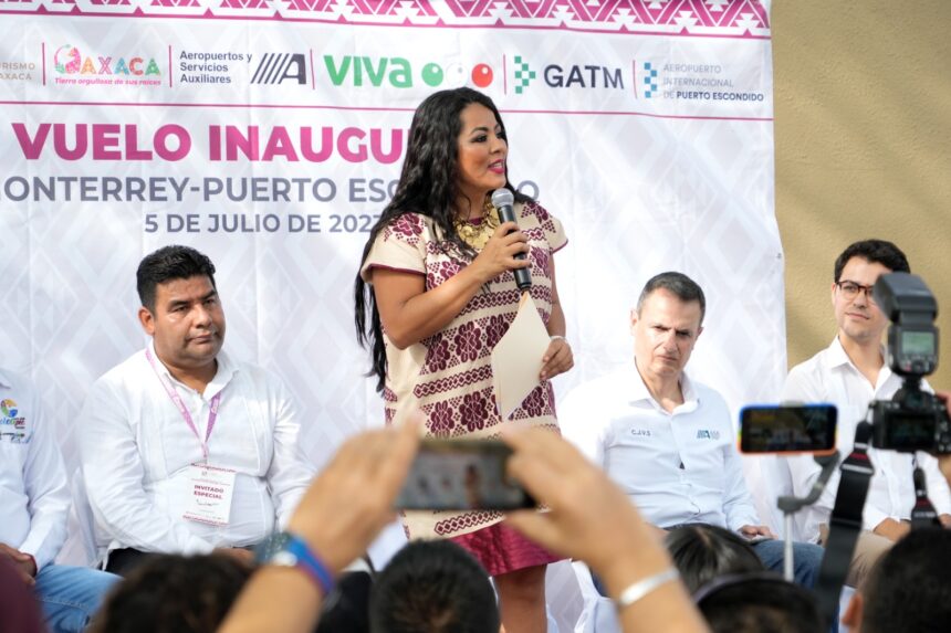 El Gobierno de Salomón Jara Cruz trabaja para detonar un mayor flujo turístico en toda la región de la Costa y lograr el bienestar de las familias oaxaqueñas con una mayor derrama económica, señaló la titular de la Secretaría de Turismo del Estado de Oaxaca (Sectur) Saymi Pineda Velasco en el inicio de operaciones de la nueva ruta aérea Monterrey-Puerto Escondido de Viva Aerobus.