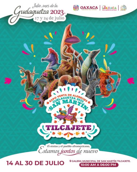 En San Martín Tilcajete se lleva a cabo la Expo Venta de Alebrijes Guelaguetza 2023 del 14 al 30 de julio, donde se ha registrado una gran afluencia de visitantes y se espera una derrama económica de 1.5 millones de pesos en beneficio de unas 300 familias de personas artesanas.