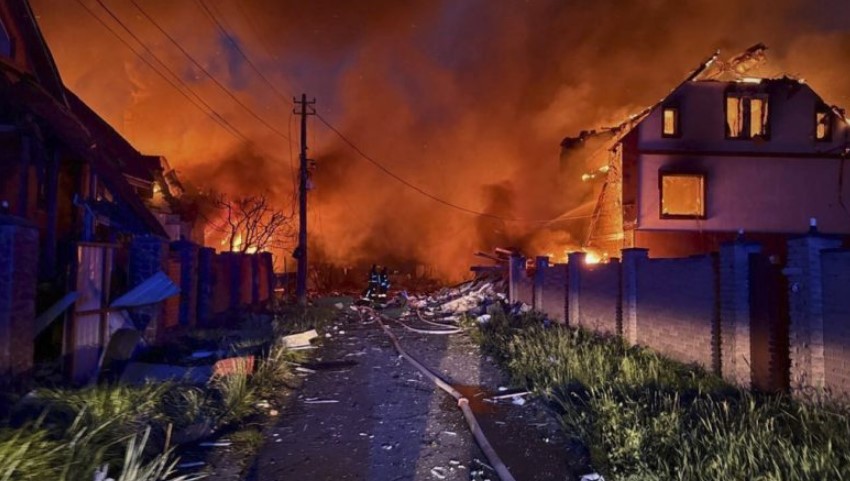 La caída de restos de drones provocó incendios en hogares y negocios.